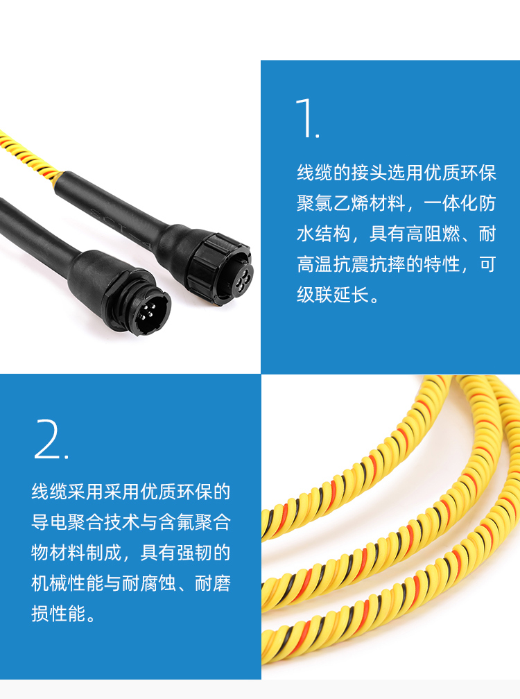 本產品已獲得國家專利局頒發(fā)的專利證書,線纜的螺旋結構專利設計不僅可以減少環(huán)境電磁干擾,降低誤報率,還大大提高了線纜的強度及使用壽命。