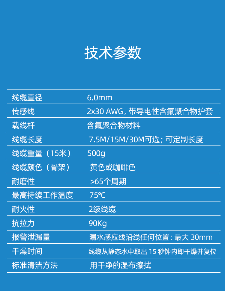 感應線電阻均勻,誤差在 1%內,對以電阻為重要參數的泄漏檢測系統(tǒng)來說,具有檢測定位高穩(wěn)定性和高準確性。