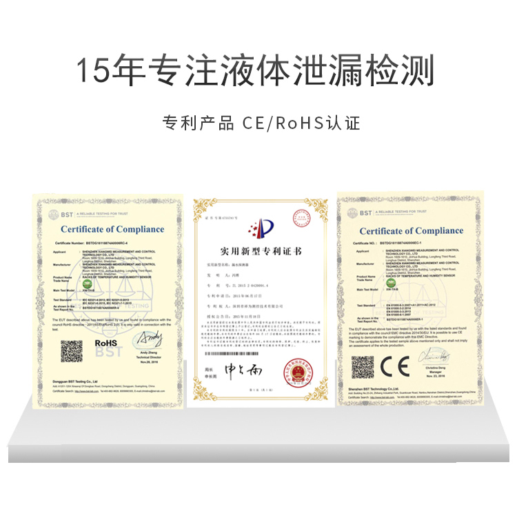 感應線具有 CE/RoHS 認證以及第三方檢測認證。