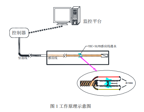 當有液體與感應線接觸時,兩根感應線內芯線遇液體導通,形成回路電阻,從而發(fā)生電流的變化,根據電阻和導體長度的比例關系,