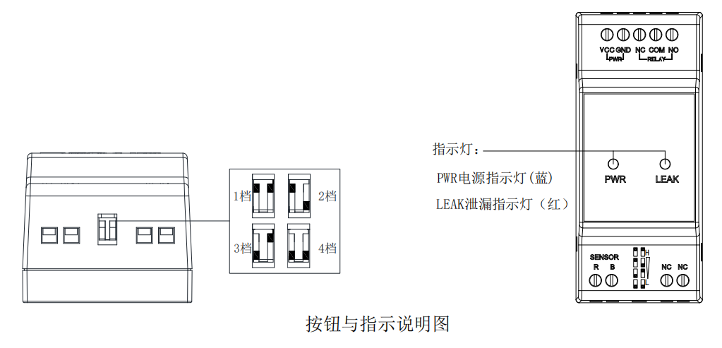 3. 控制器設(shè)置有一個(gè)靈敏度調(diào)節(jié)撥碼開(kāi)關(guān),可適應(yīng)不同環(huán)境下的漏液檢測(cè)。1 至 4 檔檢測(cè)靈敏度依