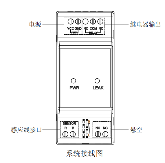 感應(yīng)線(xiàn) | 將感應(yīng)線(xiàn)的引出線(xiàn)紅、黑芯線(xiàn)分別接入控制器接線(xiàn)端子 R 、B 處,再將感應(yīng)線(xiàn) 敷設(shè)到需要檢測(cè)的區(qū)域。 |